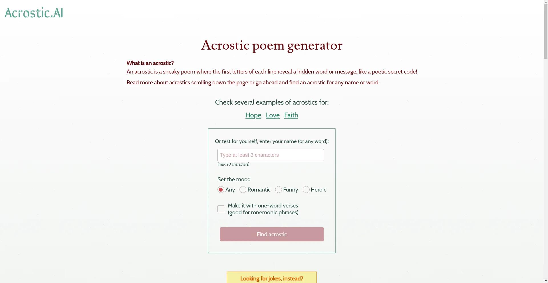 Acrostic poem generator