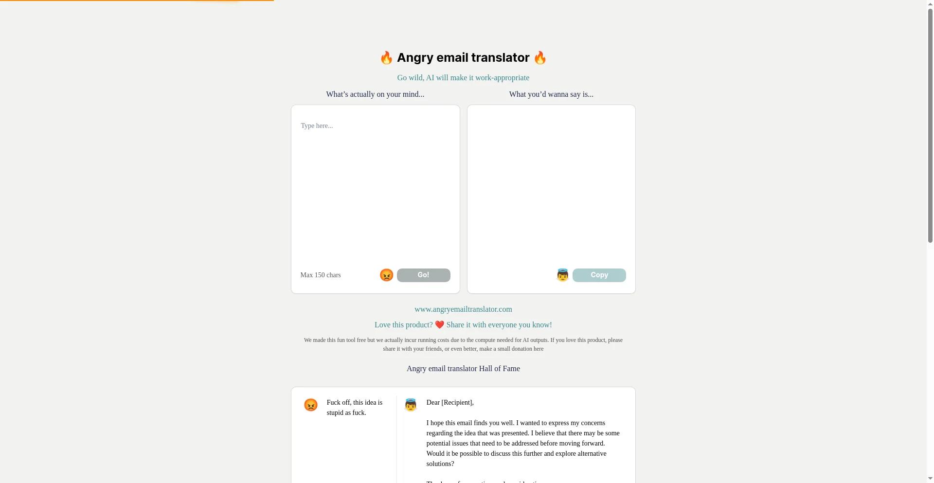 Visit WebsiteAngry Email Translator is a free online tool that uses AI to help you translate your angry, paggro emails into polite and professional sounding ones. Our AI-powered tool makes your emails more professional and avoids damaging relationships. Try it now!